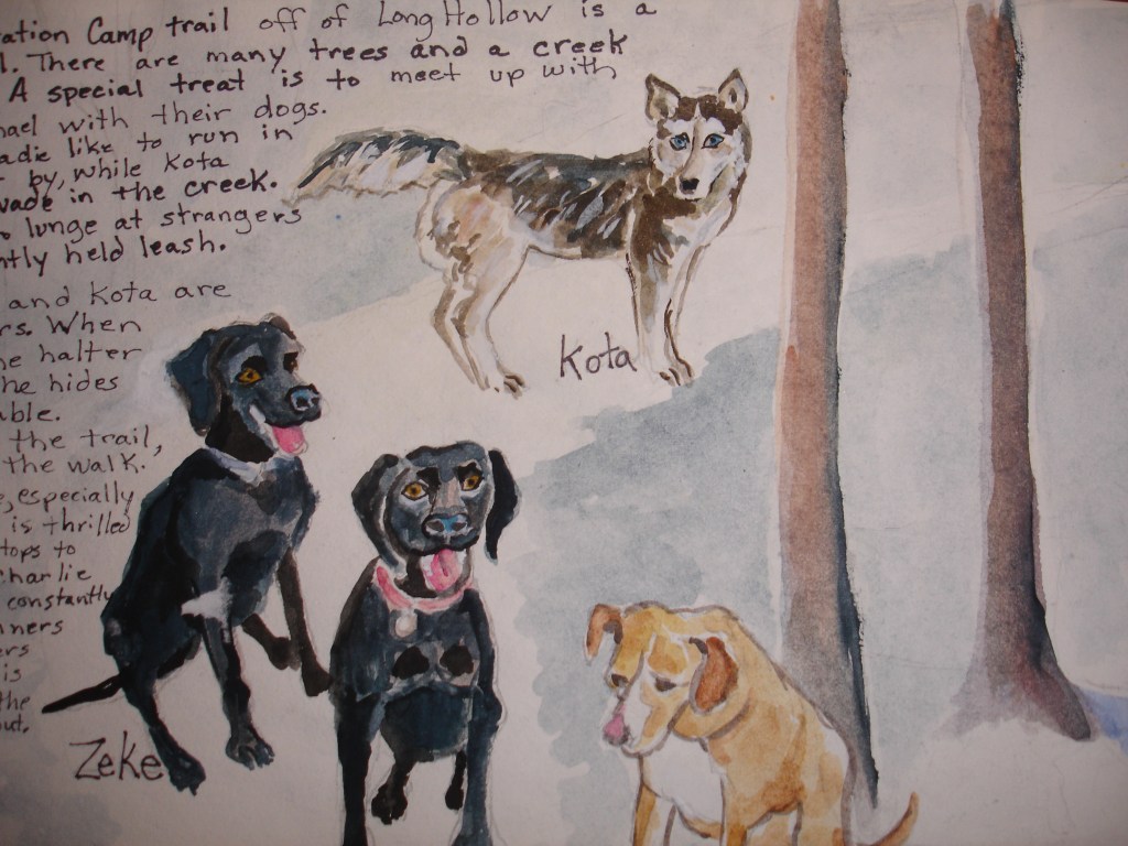 I taught at a Community College for thirty years. Early on, I discovered a quaint one lane road which was lined by trees on each side, with the branches over hanging the road. I was so excited by the tree tunnel that I drove back home and took my two girls to see the road. Neither of them said a word about it. Years later, one daughter commented that a different road was as lovely as Saint Blaise, so I felt I had made my point after all. Even though this route to the college was longer, it was part of my daily calming drive to work. My favorite time was the fall when the yellow leaves fell like rain and covered the road. I did not encounter any traffic, but was a little late one day when a cow leisurely strolled down the road. We are fortunate to have a Greenway walking trail in the area. The trail follows a creek and has lots of trees and a metal bridge. The Greenway is a great place for my daughters and I to meet to walk our dogs. Actually, our dog Penny does not walk any more. When we get the leash out, she runs and hides under the table.