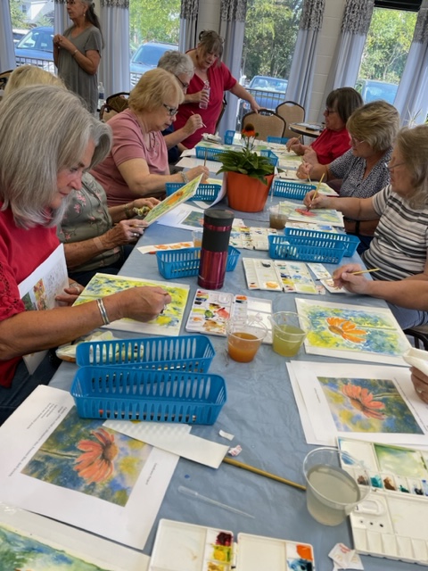 I am volunteering at the Hendersonville Senior Citizen Center teaching a watercolor class three Fridays each month. Here are some of our projects